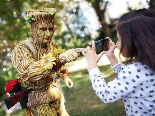 WOODY WOODman ist eine Holzfigur, die sich selbst aus einem Baumstamm schnitzt.