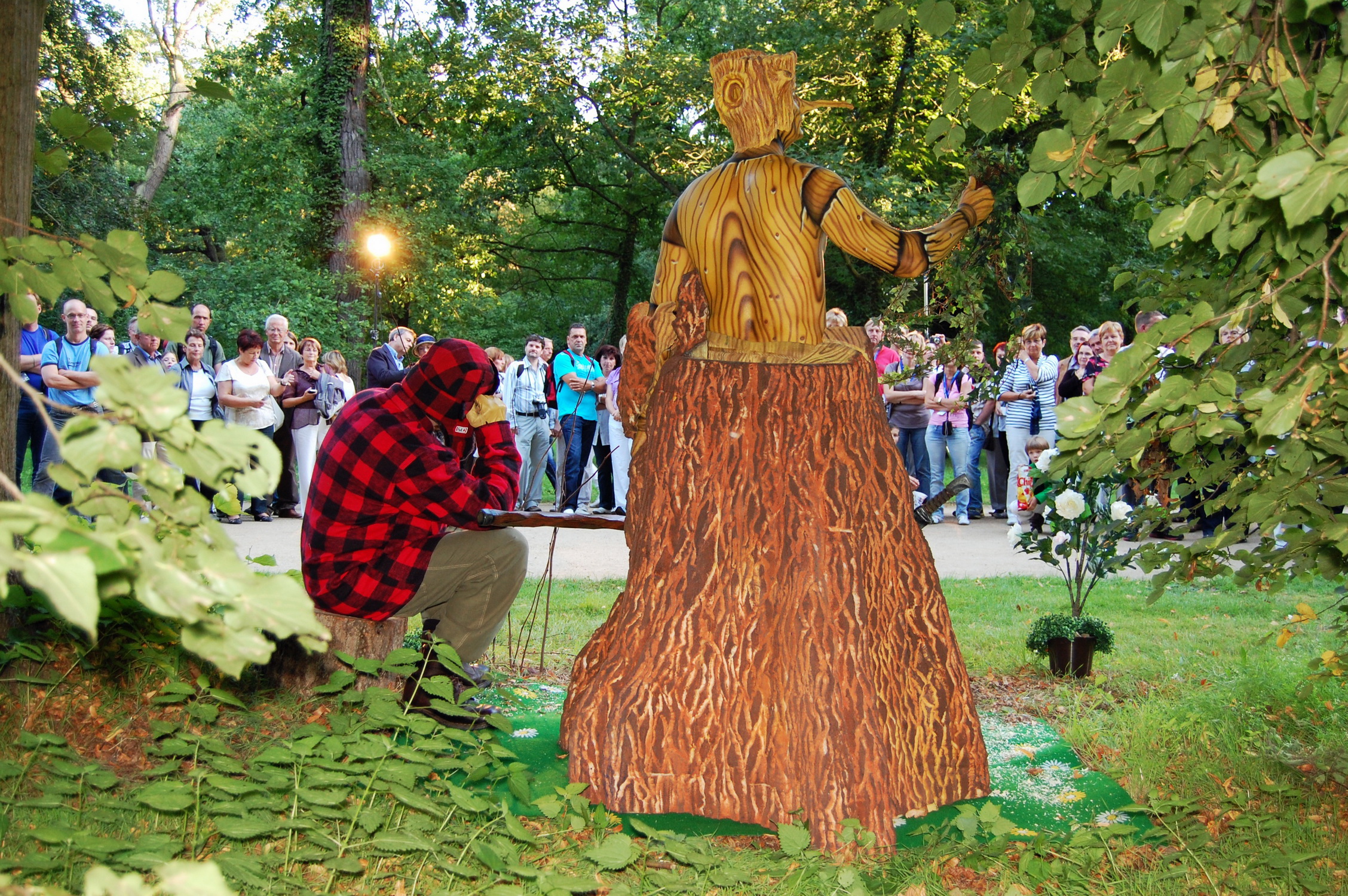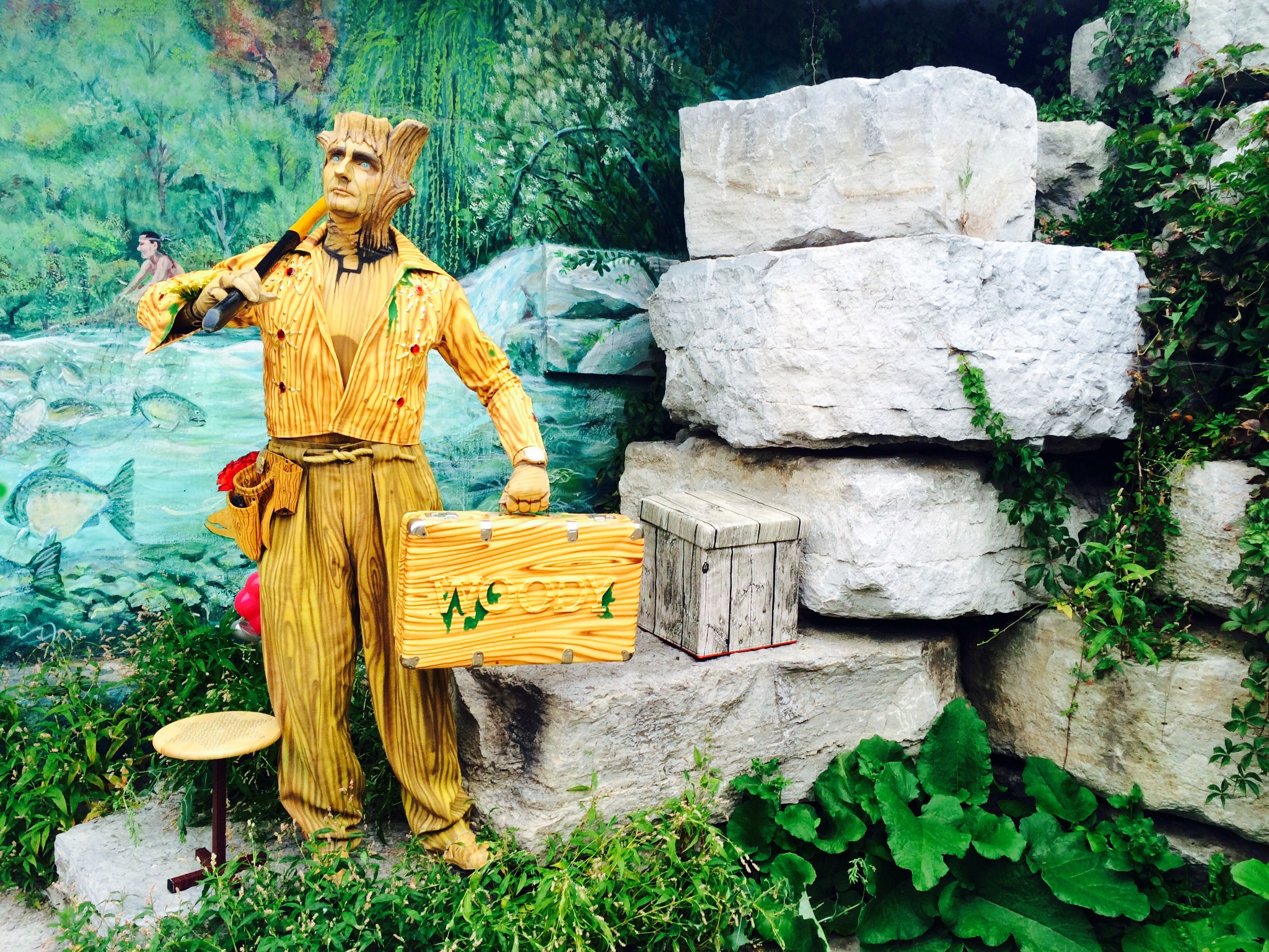WOODY WOODman ist eine Holzfigur, die sich selbst aus einem Baumstamm schnitzt.
